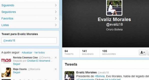 Evaliz Morales Alvarado, hija del presidente Evo Morales, forma parte activa de la comunidad virtual del Twitter y entre sus seguidores están prominentes miembros del gobierno y una decena de periodistas.