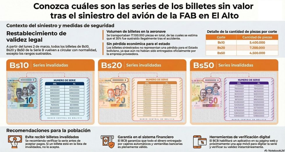 Invalidaci贸n de los billetes de Bs 10, 20 y 50 es por 48 horas, lunes 2 de marzo volver谩n a circular