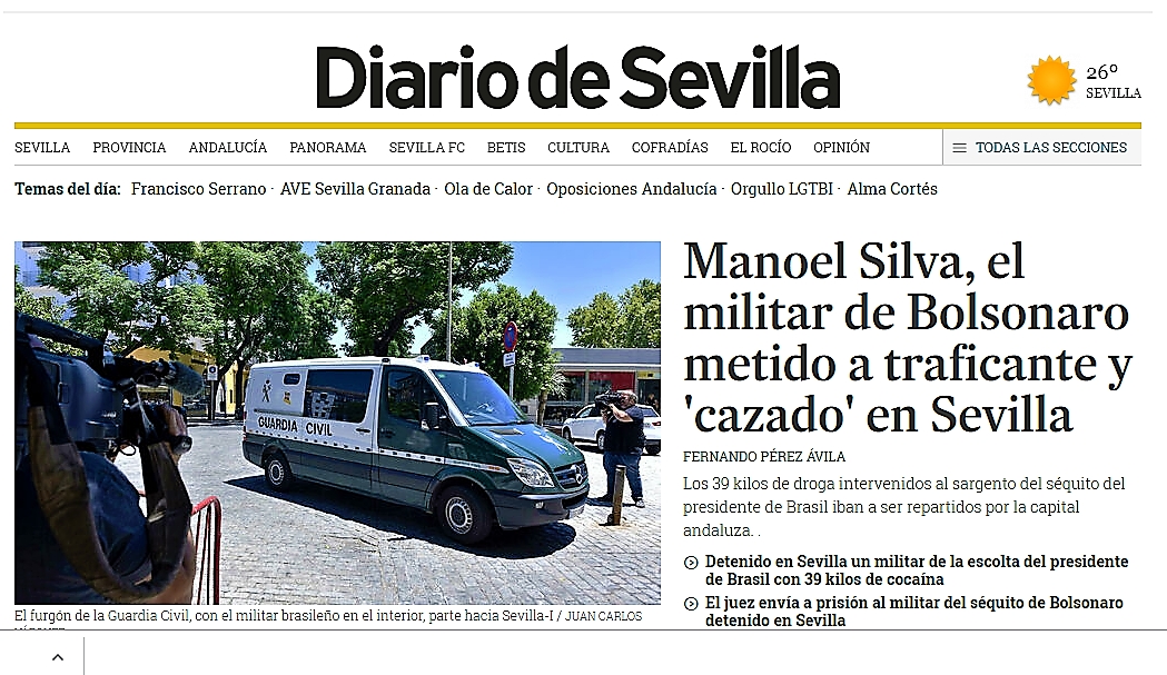 publicado en 27 / Jun / 19Manoel Silva Rodrigues, el sargento arrestado en Sevilla con 39 kilos de cocaína en un avión de la flota presidencial de Jair Bolsonaro, realizó al menos 29 viajes en Brasil y el exterior desde 2011, varios de ellos con personal de la Presidencia, según informó el diario Folha de Sao Paulo.